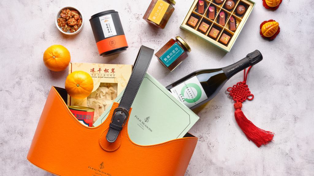 - Four Seasons Luxury Hamper – SGD 488 – Superior Abalone, Premium Korean Dried Black Shiitake, Signature Pineapple Tart, Jiang-Nan Chun XO Chilli Sauce, Jiang-Nan Chun Hot Bean Chilli Sauce, Caramalised Walnuts, Artisan Chocolate Pralines, Premium Mandarin Oranges, Imperial Pu Er Tea, GRØN Copenhagen Sparkling Tea (5% vol)