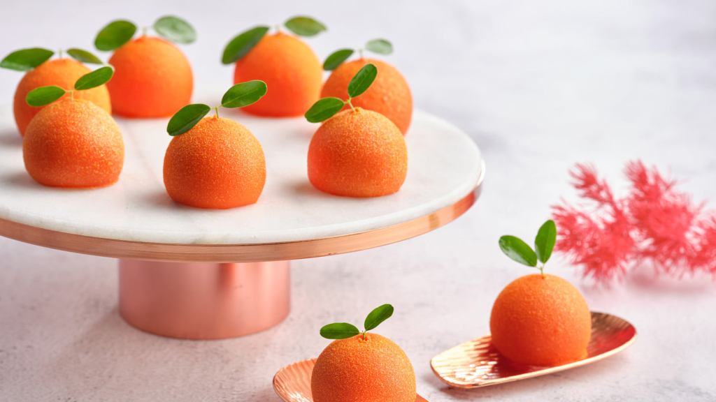 - Mandarin Crémeux Delights – SGD 88 per box – Elegantly indulgent, these petite handcrafted Mandarin-shaped gourmet gems are filled with a smooth Jivara milk chocolate Pu Er crémeux juxtaposed by a crunchy hazelnut royaltine for a delightful treat of flavours and textures. Crafted by Executive Pastry Chef Audrey Yee, a veteran with Four Seasons and graduate of the renowned Le Cordon Bleu School in London.