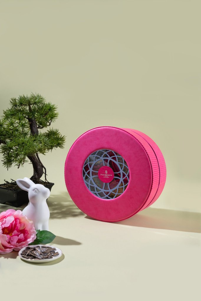 Handcrafted with the utmost care, the premium mooncakes come in a custom Four Seasons gift box of joyful pink and elegant lavender, complemented by intricate festive symbols.