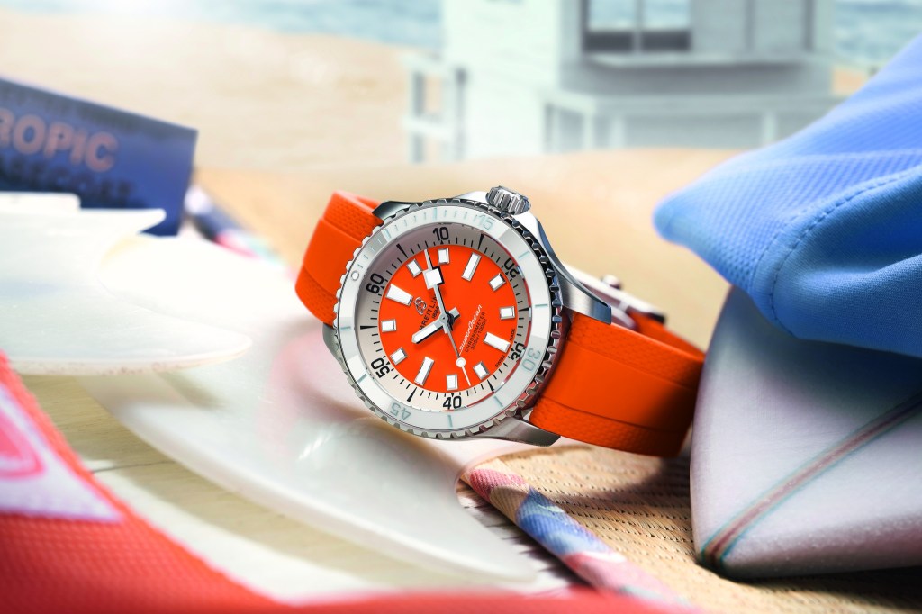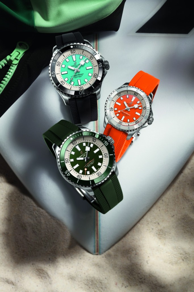 “I’ve been co-creating watches with Breitling for the past few years but this one, in particular, is very personal. It’s inspired by my late father, who had a watch with an orange face that he used to wear surfing for as long as I can remember. The green and orange together is a colour scheme I used to like for the airbrushes on my boards growing up. That combination has always stuck with me.”