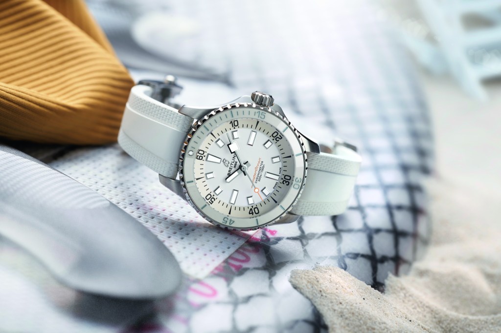 Breitling recently redesigned its sporty sea watch, the Breitling SuperOcean. The new line continues the minimalist design of the original SuperOcean Slow Motion from the 1960s and 1970s while incorporating contemporary features and a vibrant colour scheme.