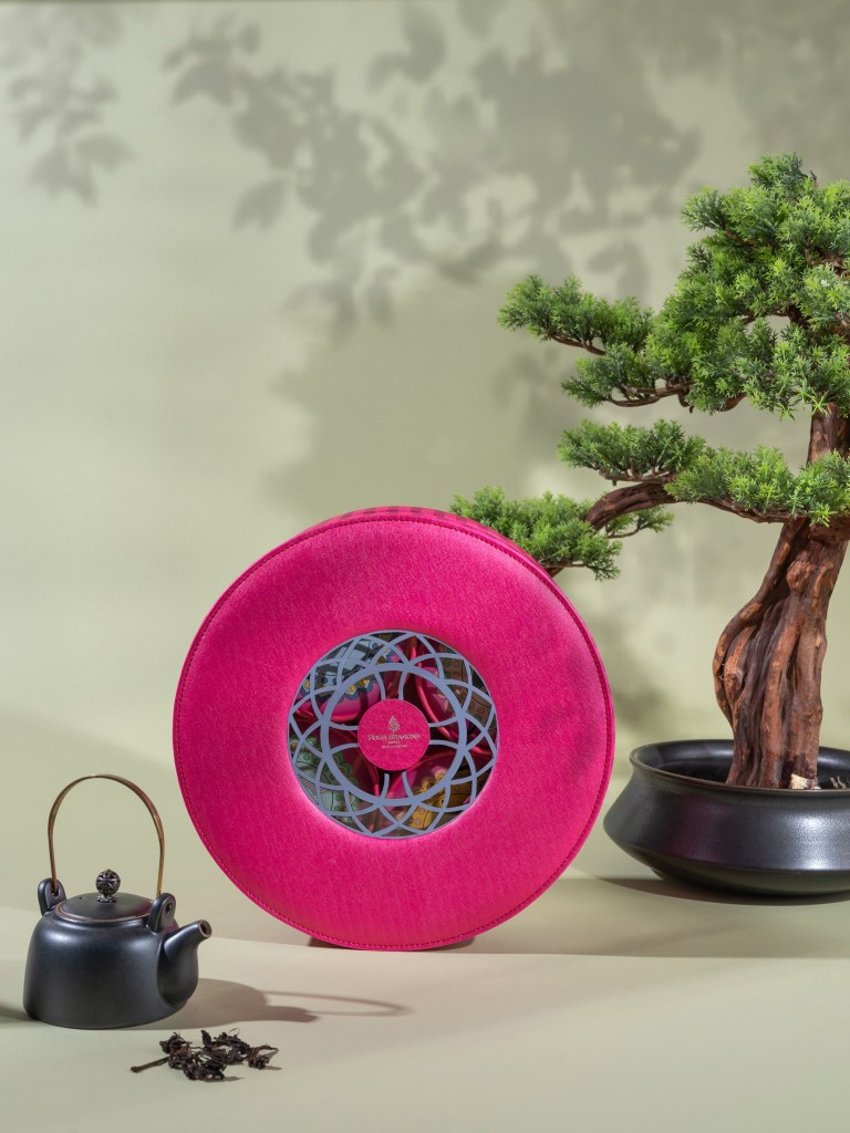 The peacock origami pattern and round totem box depict the old Chinese habit of a family gazing at the full moon while sharing delectable mooncakes. Each distinctive box cover features an unmistakable Jimmy Choo design, which draws attention to the design’s brilliant colours.