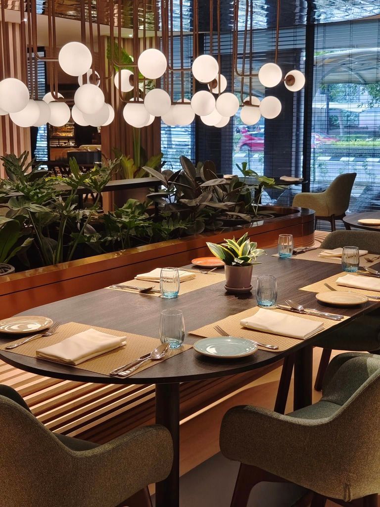 Thyme prides itself on creating flavorful creative meals that are meticulously prepared using a variety of locally sourced seasonal ingredients. Thyme provides a range of nutritious options, such Organic Quinoa Salad, Supper Acai Bowl, and Homemade Bircher Muesli, to give mindful eaters a memorable dining experience. Beyond its fresh ingredients, Thyme includes sustainability into the food management procedures and decor of the restaurant, incorporating natural materials and forest tones in harmony with the hotel’s brand concept. Thyme has elegant private dining facilities for those looking for a more intimate setting and is suitable for various eating settings, from small parties to big celebrations.