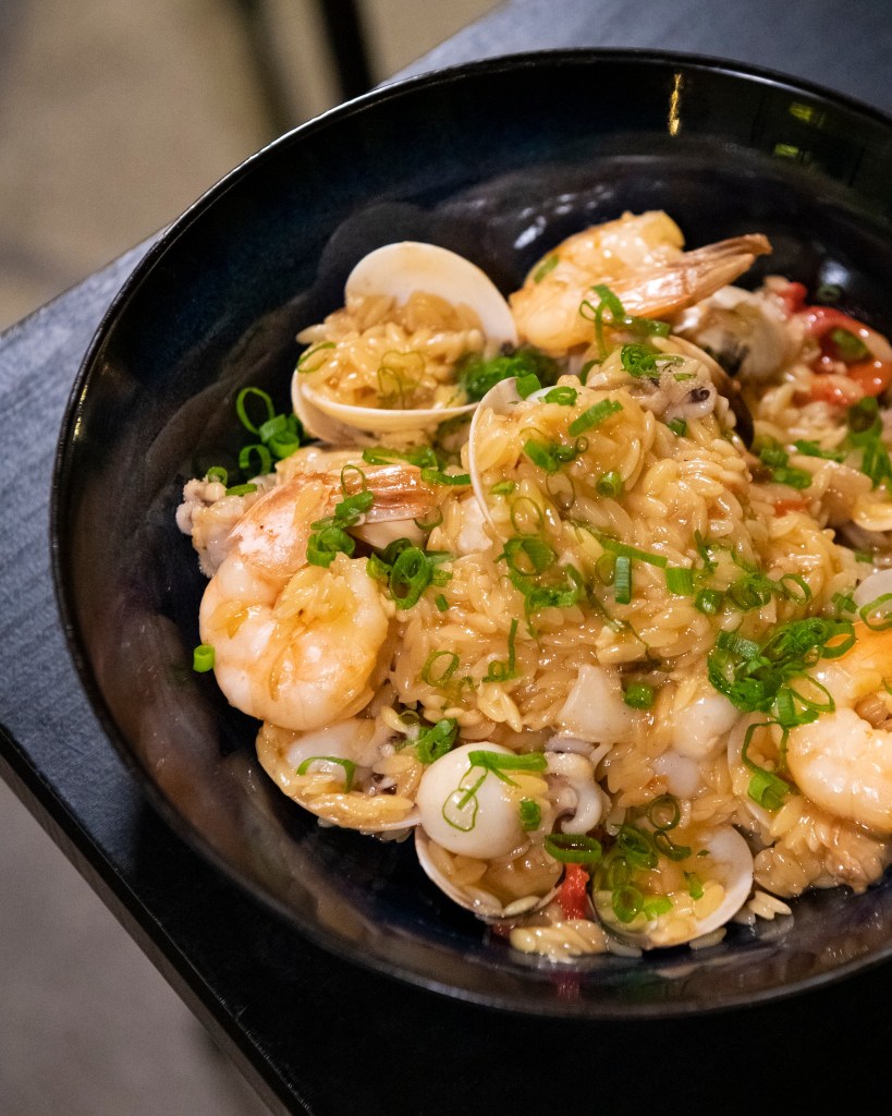 - Pan Fried Tiger Prawn with Mango Salsa & Paella Rice