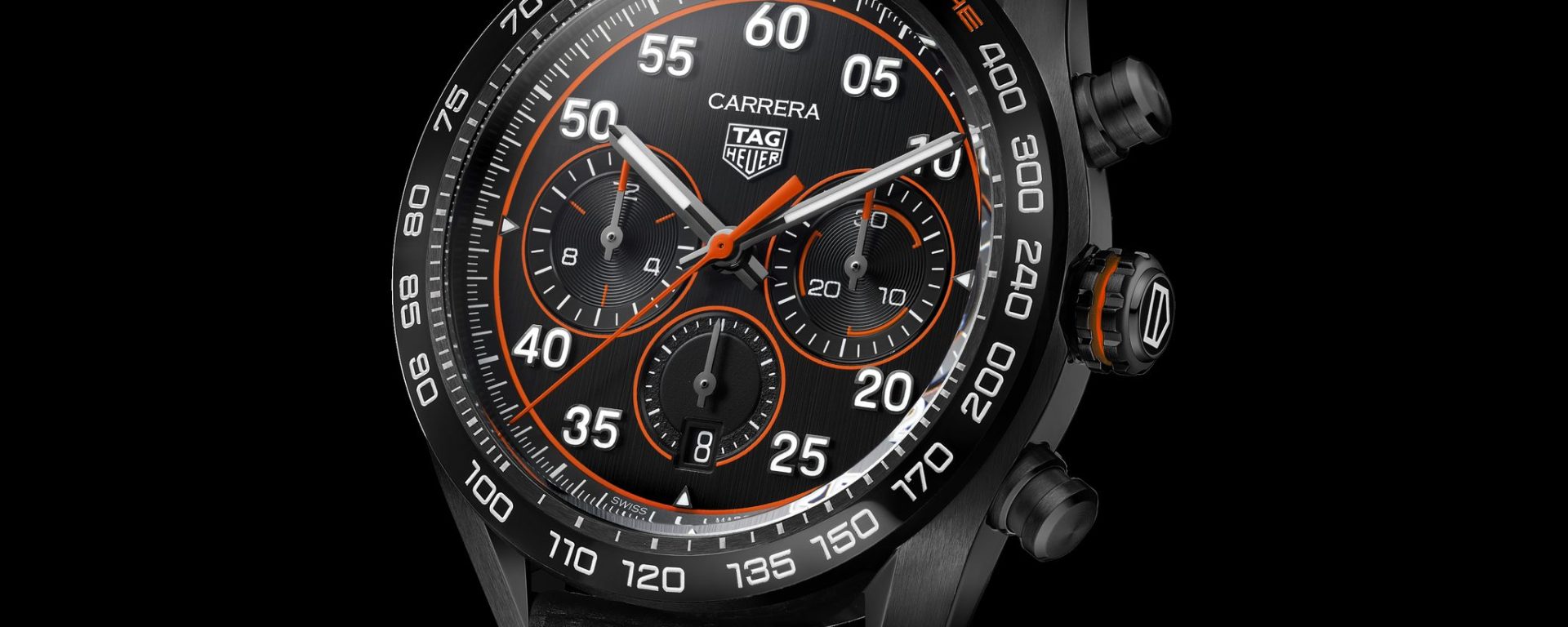 Another prominent colour in this limited edition is black, which elegantly contrasts with the brightness of the orange. To obtain this harmonised finish with tasteful touches of colour, the TAG Heuer designers employed black in various textures and finishings.