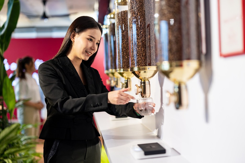 Following that, guests could choose their favourite coffee bean from a selection of five with varying flavour profiles at the station before proceeding to grind their coffee beans at the grinding station. Ethiopia Guji Anasora, Ethiopia Sidama Bensa, Ethiopia Aricha White ‘Sakura Drop,’ Uganda Naginzole Bulambuili ‘Engagi,’ and Brazil Fazenda Bossa Nova ‘Yellow Estellar’ were among the coffee beans offered, with their diverse flavour profiles described by Shaun Liew, Co-Founder of Curate Coffee.