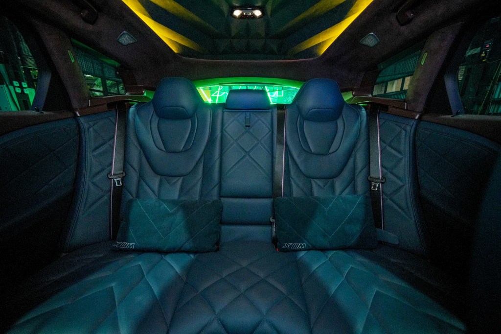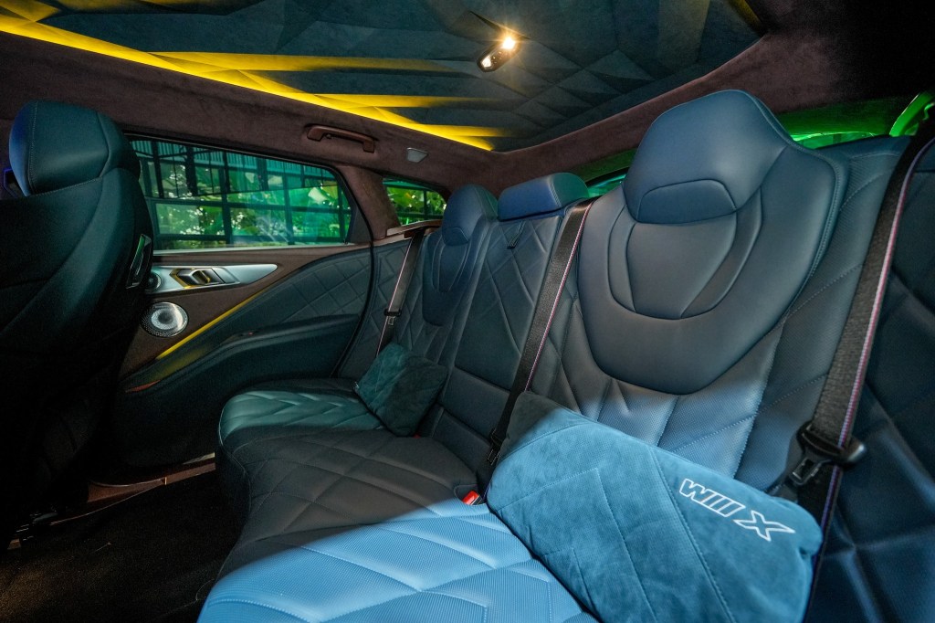 The M Lounge provides a full-width rear seat bench that curves and encloses the passengers towards the back of the cabin. Meanwhile, sophisticated upholstery adds an exclusive lounge feel to the space. Finally, the Alcantara headliner, with its prismatic 3D structure, produces a visual highlight that contributes to a distinct sense of space, showing craftsmanship and comfort in the most remarkable way.