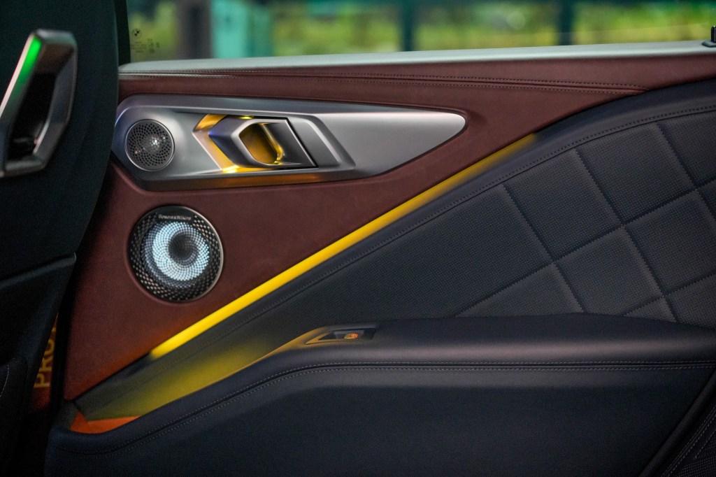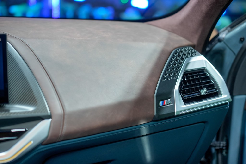 On the door panels and upper sections of the instrument panel, new vintage leather has been used, which has been enhanced further by a special finishing process that brings out the natural characteristics of the Walknappa leather. Active seat ventilation and 4-zone automatic air conditioning control are included for further comfort. There is also a massage feature for the driver and front passenger. Ambient lighting and BMW Iconic Sounds Electric, on the other hand, enhance the ambiance within the cabin, while the Bowers & Wilkins Diamond Surround Sound System provides in-car entertainment.