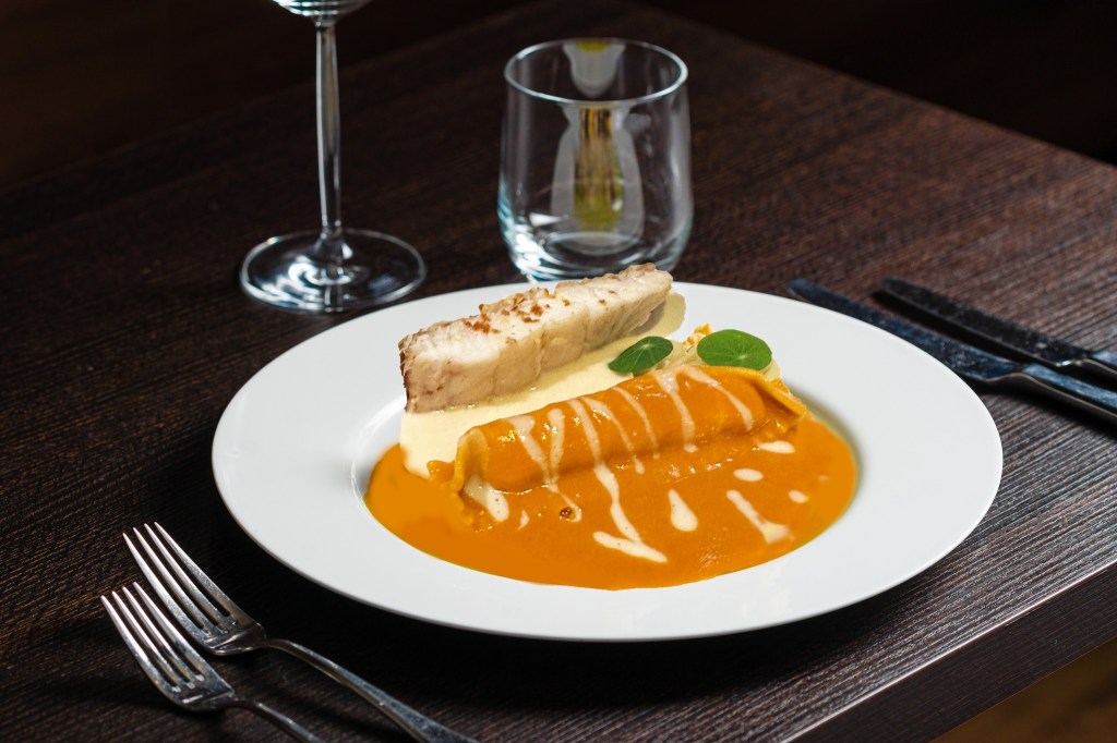 Chef Murli will present a Symphony of Heirloom Tomato, featuring perfectly ripe heirloom tomatoes accompanied by aged balsamic and goat’s cheese panna cotta. The Primo Piatto, crafted by Chef Daniel, will showcase Agnolotto from the Summer, a pasta filled with wolf herring mousse, grilled red coral, hot nasturtium flower butter, and bottarga.