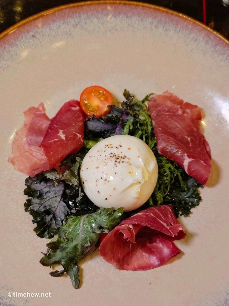 BURRATA: A creamy delight of Burrata Cheese served with Beef Bresaola and Mesclun Salad, a true Italian classic reimagined with Chef Nicola’s signature touch.