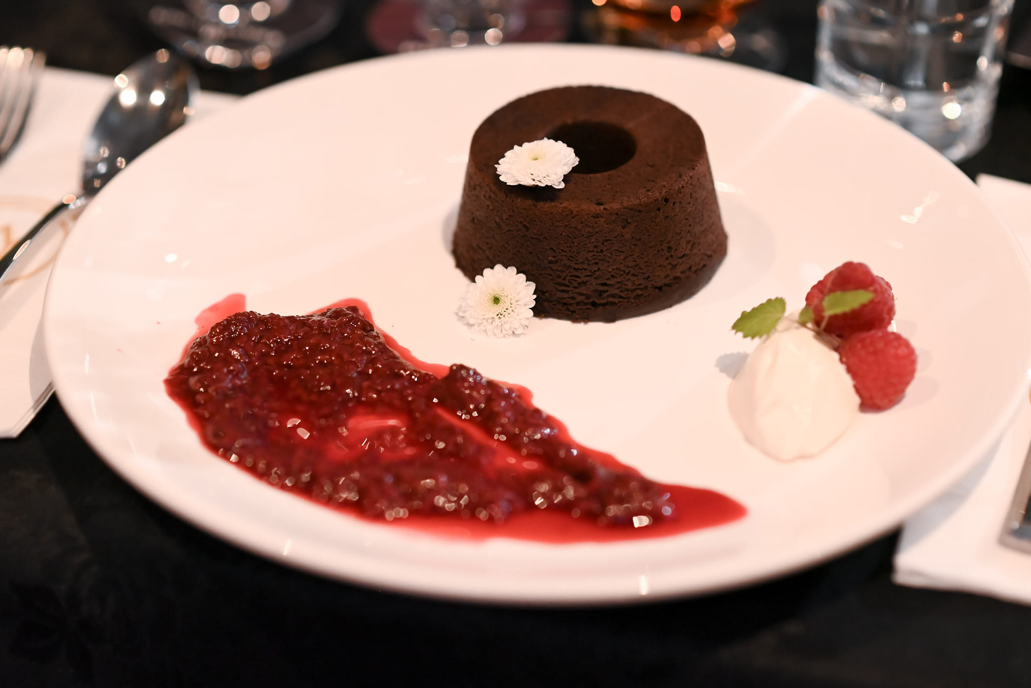 A palate cleanser of Madeira sorbet arrives, its refreshing coolness and subtle sweetness resetting our senses for the main course. This interlude serves as a reminder of the thoughtful pacing of the evening, each element meticulously considered to maximize our enjoyment.
