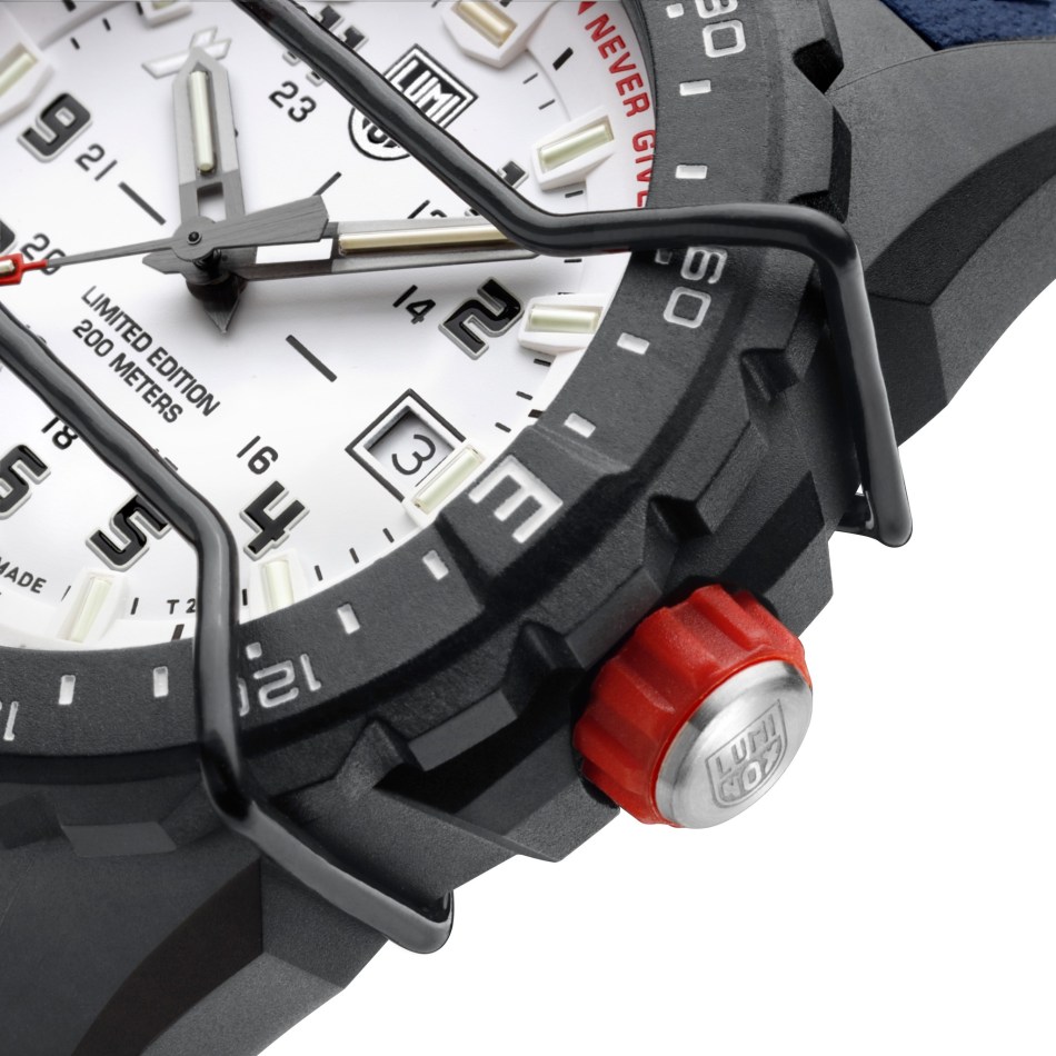 In keeping with the colours of the Nepali flag, the limited-edition model has an eye-catching white dial, a deep blue band, and a red crown. Mount Everest itself is adorned on the case back, and the chapter ring bears the summit’s elevation, “8848M.” Luminox is set to release only 800 units of the Bear Grylls Limited Edition Mountain timepiece globally. Last but not least, the limited edition is ideal for the tough explorer since it comes with a detachable bull bar that is meant to further safeguard the crystal.