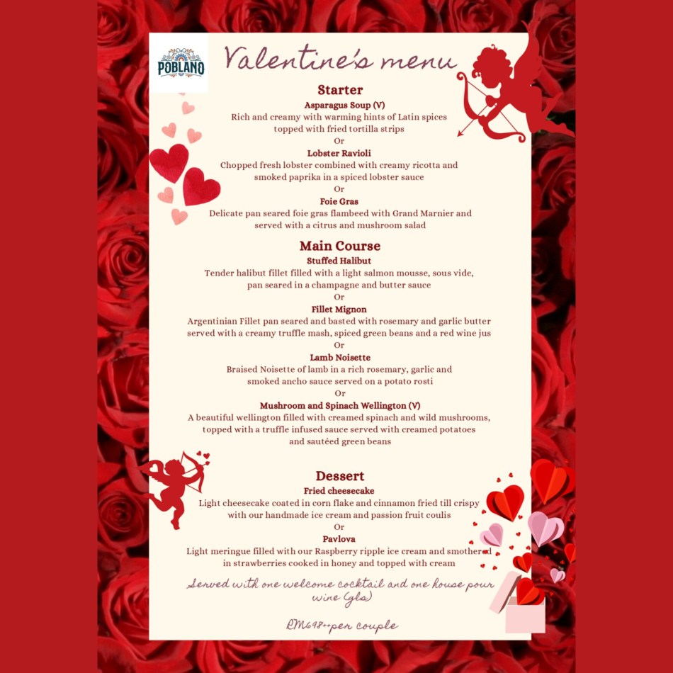 This Valentine’s Day, let Poblano Kuala Lumpur be your stage for love expressed in the most delicious language imaginable. Chef Frediani, the maestro of culinary delights, has composed a special menu designed to melt hearts and ignite taste buds with every bite. Imagine your romantic adventure beginning with a choice: indulge in the warmth of creamy asparagus soup infused with Latin spices, or embrace the decadence of lobster ravioli bursting with fresh lobster and ricotta, bathed in a spiced lobster sauce. Feeling adventurous? The pan-seared foie gras flambéed with Grand Marnier, accompanied by a citrus and mushroom salad, awaits your tantalization.