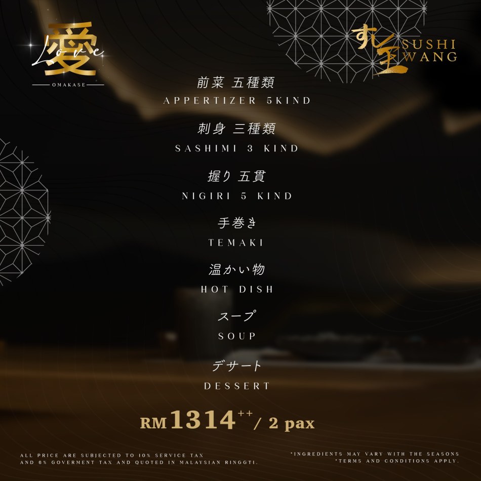 This one-of-a-kind Love Sushi Omakase, priced at RM1314++ per couple, is more than just a meal; it’s an investment in memories you’ll cherish forever. Seize the moment and turn Valentine’s Day into a love story for the books. Reserve your table today and let Sushi Wang orchestrate an unforgettable night of romance, connection, and exquisite flavours.