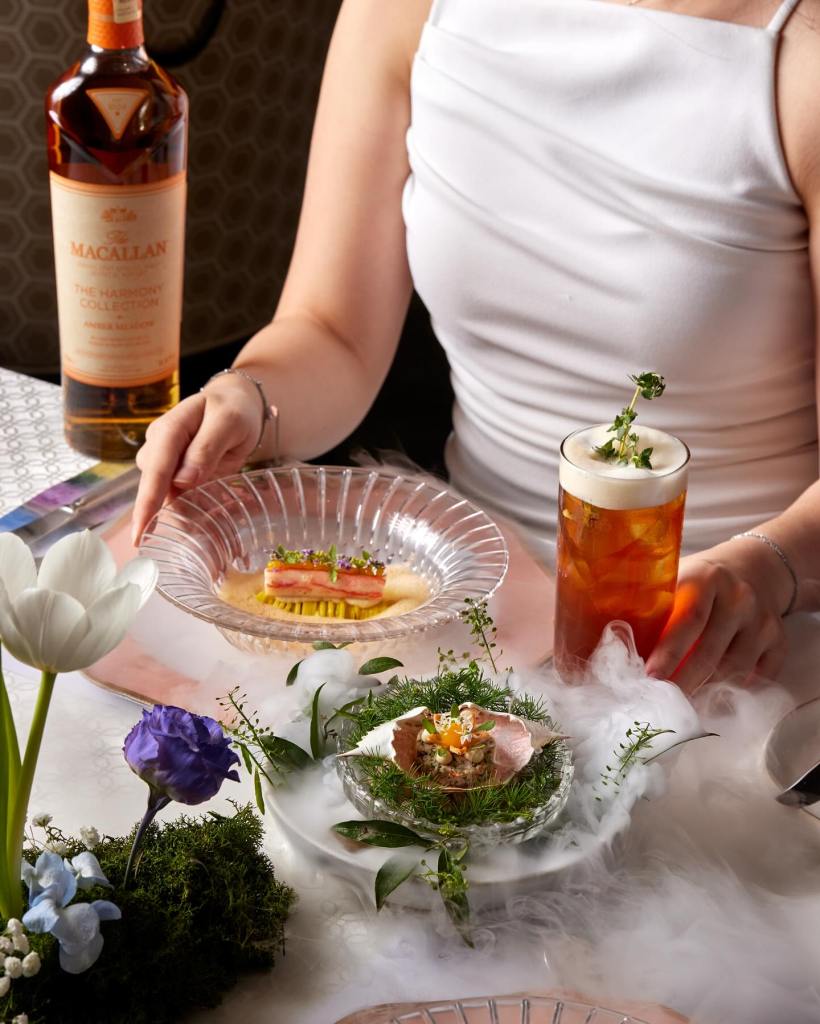 Indulge in a symphony of flavours, a nine-course culinary odyssey designed to sweep you off your feet, paired with The Macallan Harmony Collection-Amber Meadow. Let these amber-hued elixirs, renowned for their smooth sophistication, elevate each bite to new heights of delight.