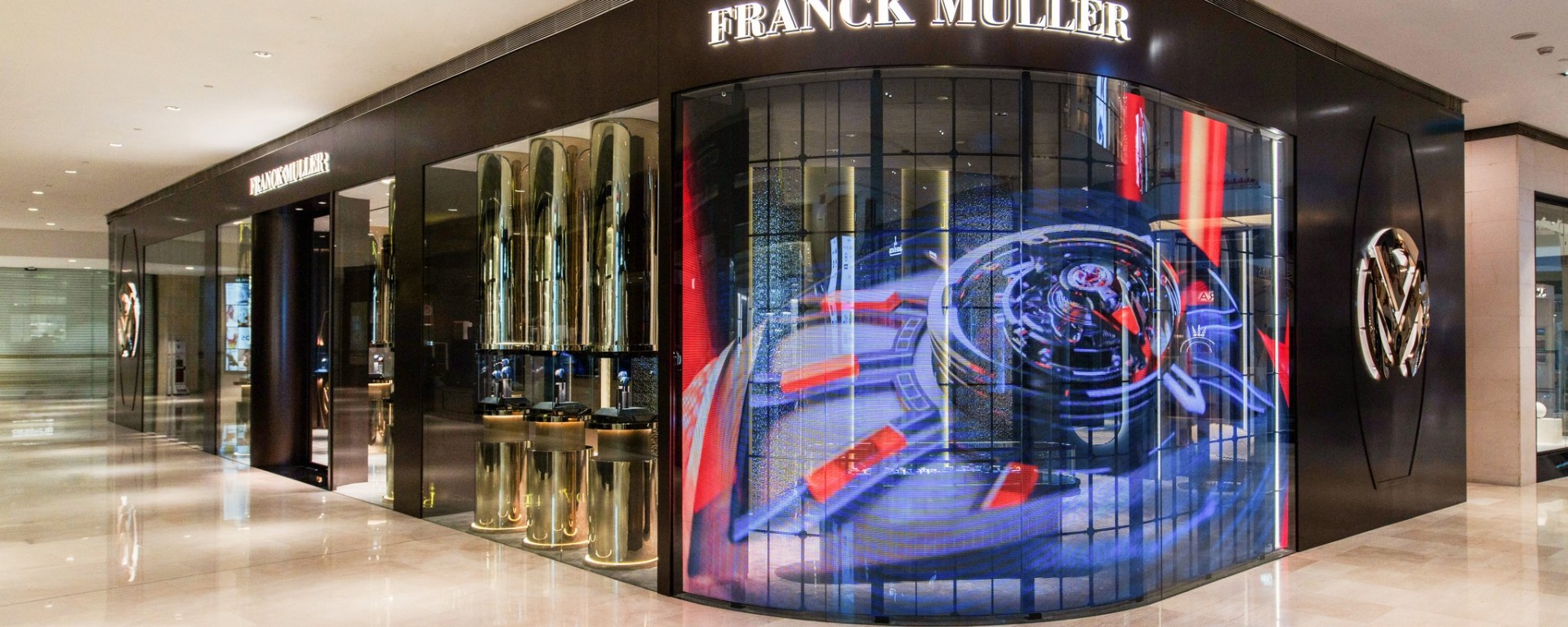 Originally opened in 2021, the boutique has undergone a meticulous transformation, boasting a fresh and luxurious interior that effortlessly blends modern sensibilities with a touch of opulence. Neutral colour palettes create a calming canvas, accented by signature Franck Muller navy blue and champagne gold, exuding an air of timeless sophistication. The exterior itself is a captivating invitation, featuring a curved LED screen that acts as a visual jewel, drawing passersby in to explore the wonders within. Upon entering the double-door glass entrance adorned with the iconic Franck Muller emblem, one is immediately greeted by a world of warmth. Lavish interiors bathed in soft light showcase holographic displays and a stunning collection of Franck Muller’s most coveted timepieces. This flagship boutique transcends the boundaries of a simple store, offering a truly immersive experience where architectural brilliance seamlessly blends with cutting-edge design.