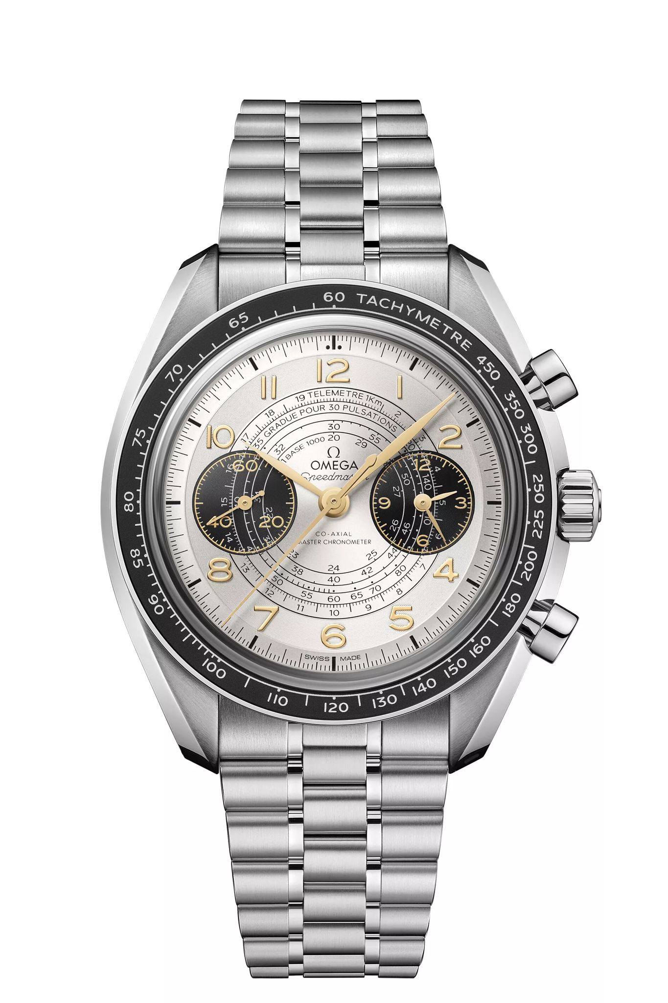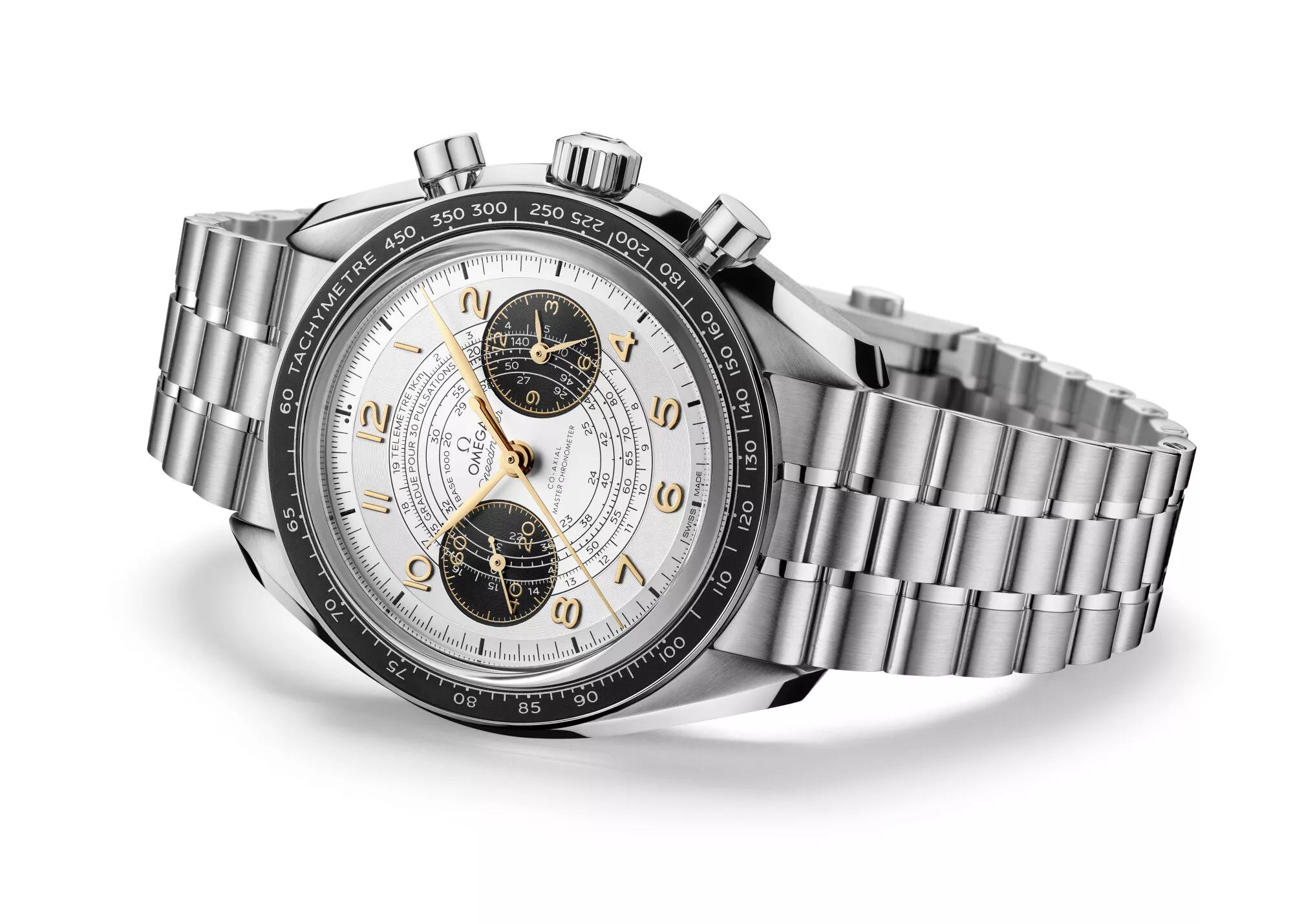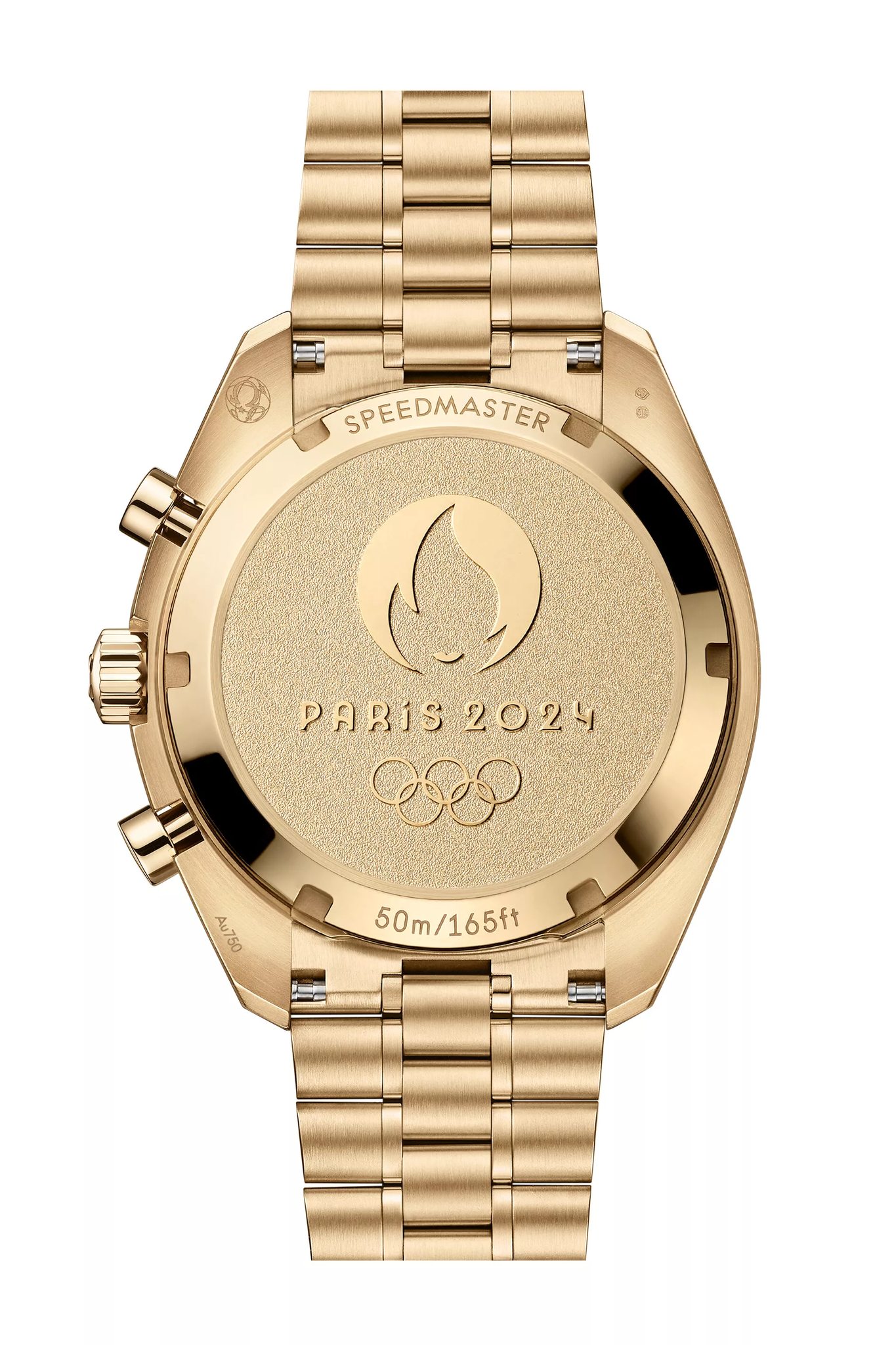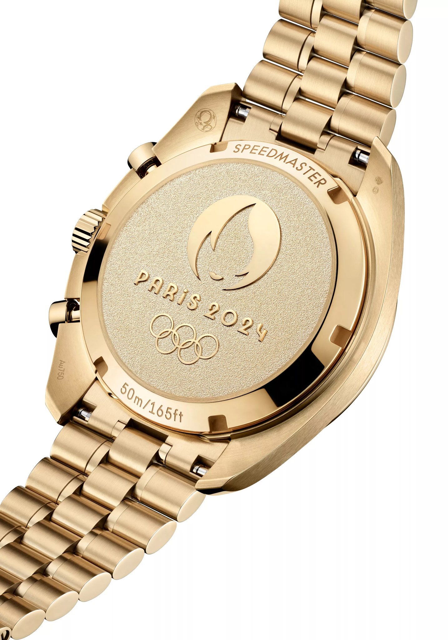 The Speedmaster Chronoscope Paris 2024 collection offers two additional options: a stainless steel model paired with a perforated black calfskin leather strap, and an 18K Moonshine™ Gold version complemented by a classic black calfskin leather strap.