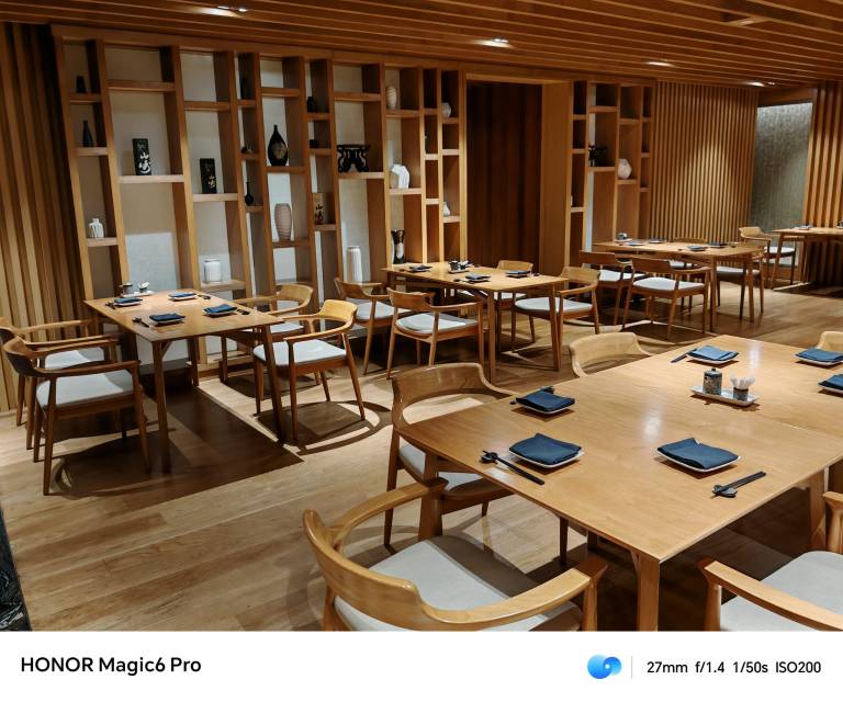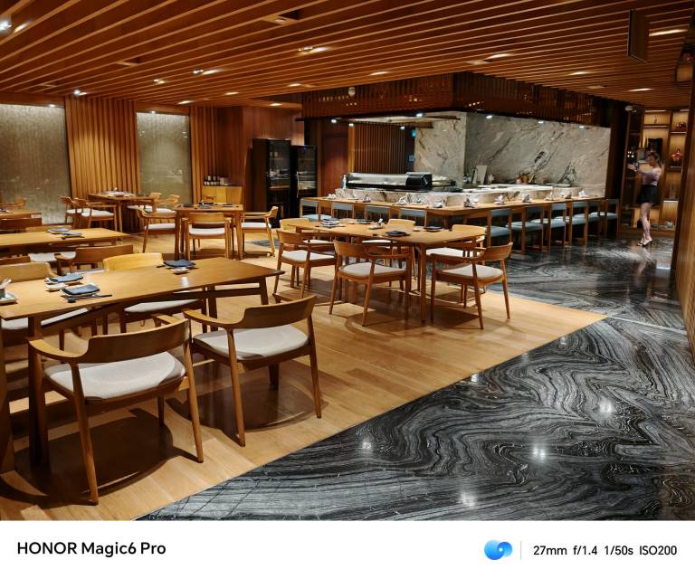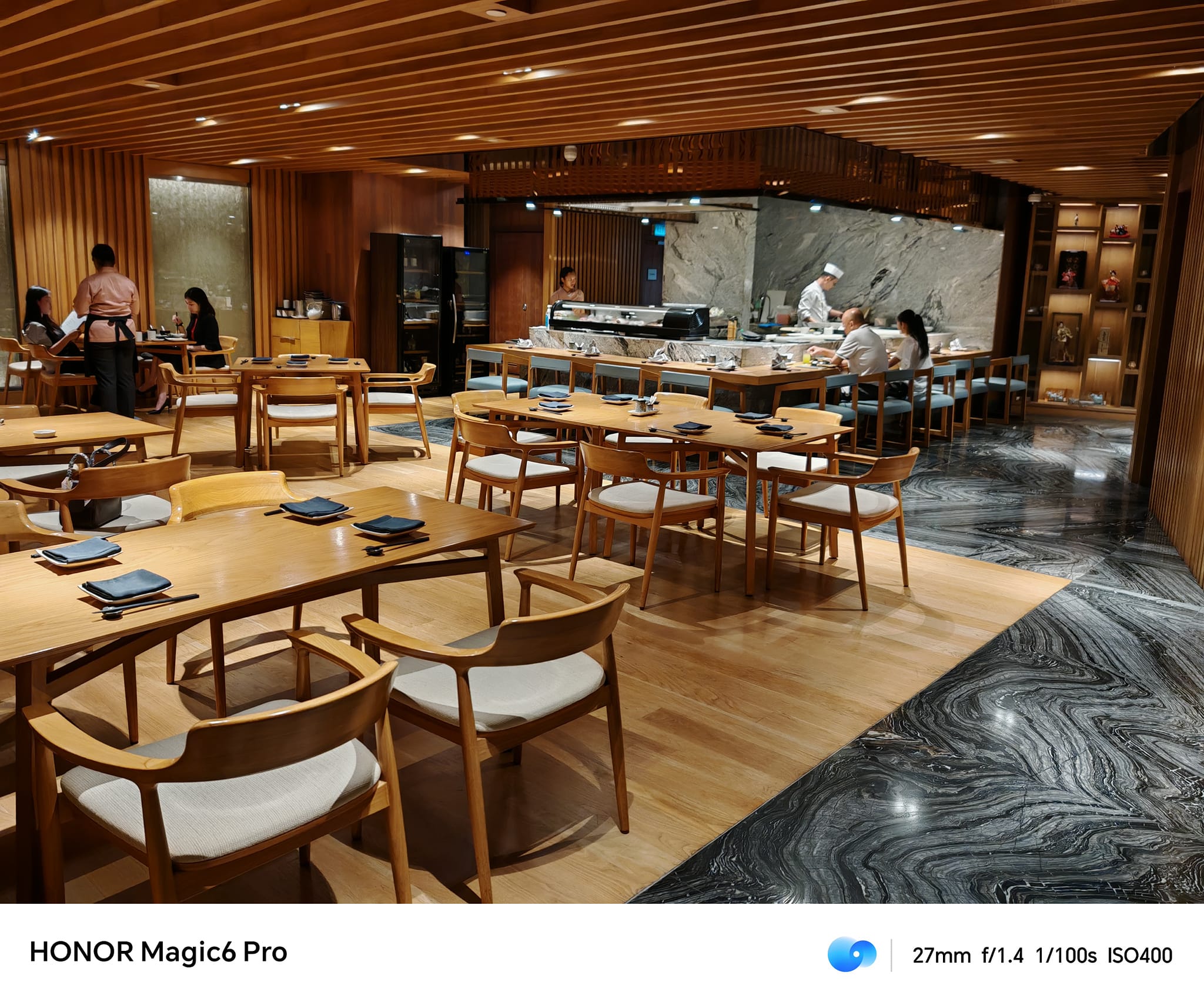 The restaurant’s interior design incorporates wood elements to create a serene atmosphere, reminiscent of traditional Japanese aesthetics. The main dining area is suited for group gatherings, accommodating families and friends in a comfortable setting.